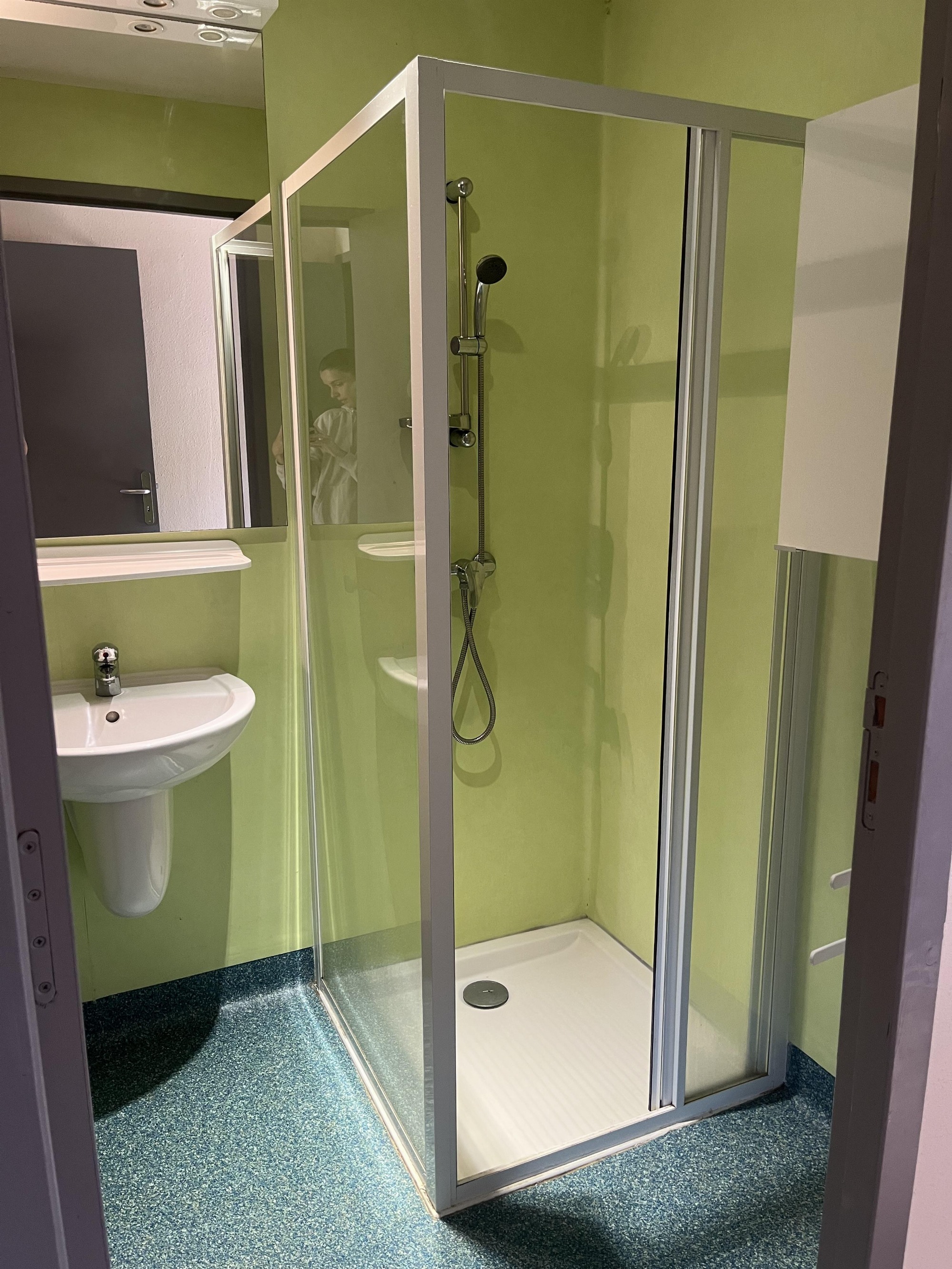 • Douche avec assise + espace de circulation
