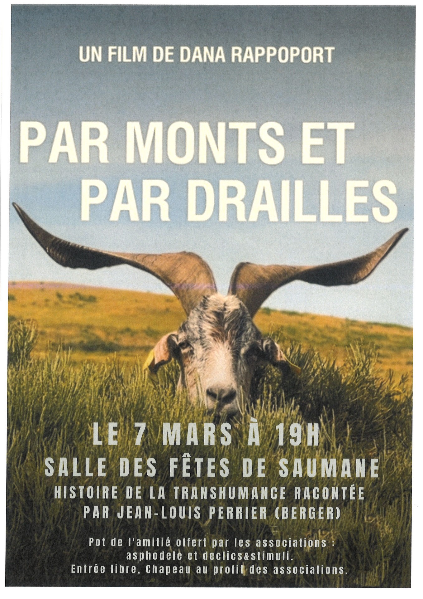 Les associations Déclics & stimili et Asphodèle vous presente le dernier film de Dana Rappoport - "Par Monts et par Drailles" - Histoire de la transhumance racontée par Jean Louis Perrier (berger).