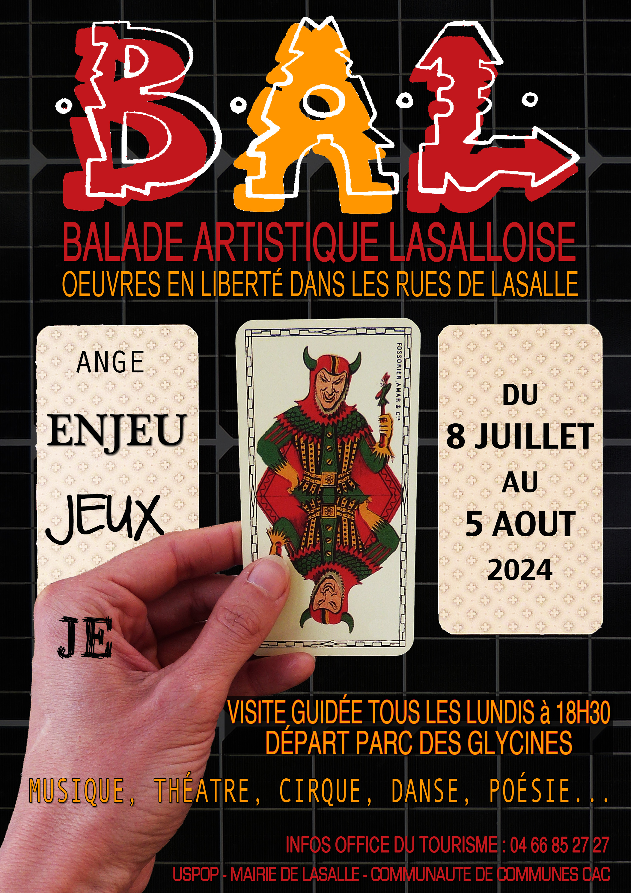 B. A. L - Balade artistique lasalloise Gratuite et en extérieur, venez vivre la B. A. L qui n'a rien à voir avec la musique folklorique bien que vous pouvez la faire en dansant ! Un groupe d'artistes lasallois ( peintres, sculpteurs, graffeurs, photographes... ) en association avec l'USPOP ( Université sauvage & populaire ) propose de venir visiter Lasalle autrement, à travers un parcours dans le village. Venez la découvrir librement et sans inscription