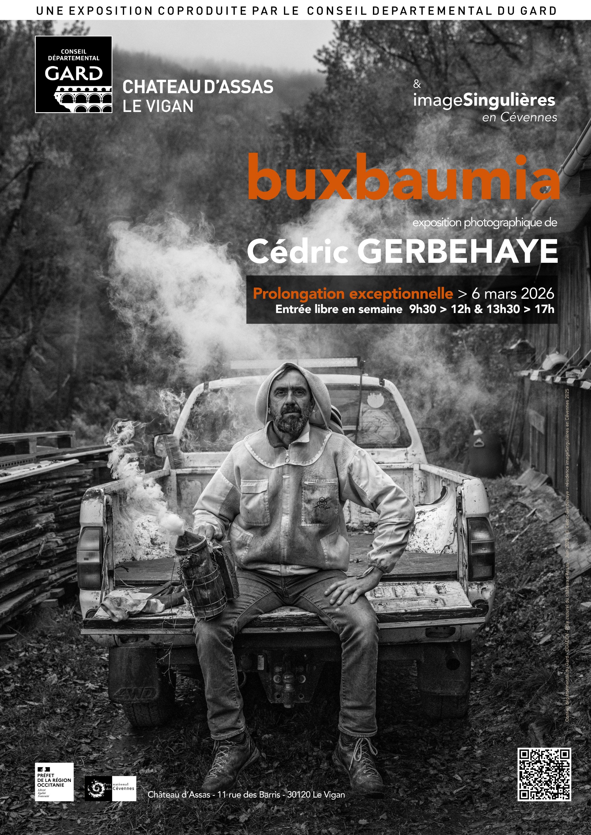 Ouverture exceptionnelle de l'exposition buxbaumia de Cédric Gerbehaye au château d'Assas du Vigan à l'occasion de la braderie du livre organisée par la médiathèque. Entrée libre