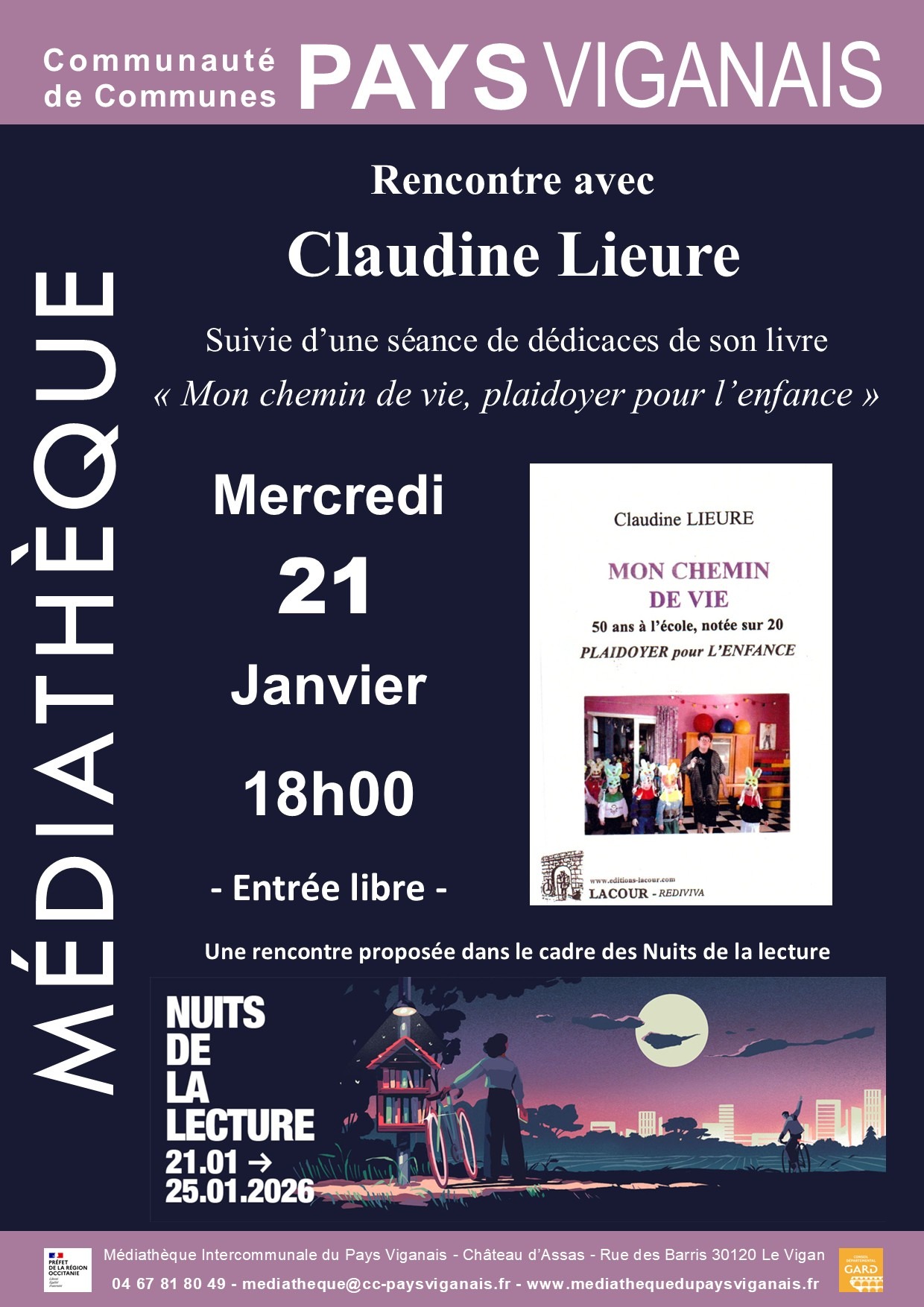 Rencontre avec Claudine Lieure autour de son livre « Mon chemin de vie, plaidoyer pour l’enfance », suivie d'une séance de dédicaces