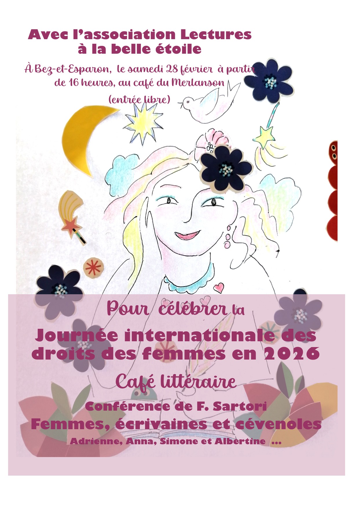 Une conférence de Fabienne Sartori autour de quelques livres d’écrivaines cévenoles. Anna Rey, S.Pesquiès-Courbier, A. Durand-Tullou, Albertine Sarrazin : autant de femmes aux parcours inspirants et de témoignages majeurs sur la société de leur temps.