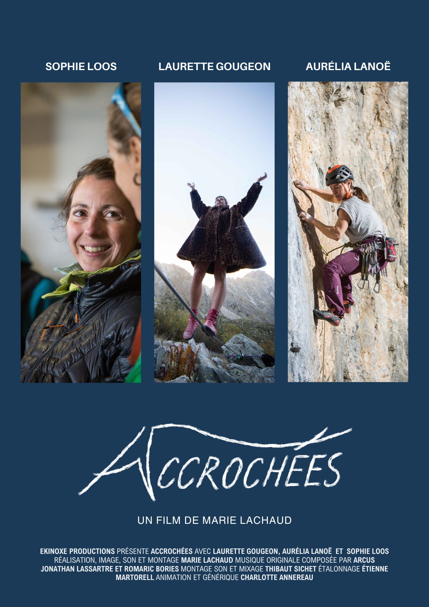 Synopsis : Sophie est gardienne de refuge, Laurette est circassienne et metteuse en scène, Aurélia est guide de haute montagne. Ces trois femmes ont un point commun; elles ont fait de la montagne leur métier, leur source de rêves et leur désir de partage. Accrochées est une ode à la femme en montagne. C’est le récit entremêlé de trois femmes le temps d’un été dans les Écrins. Trois femmes qui s’affirment, trois femmes qui inspirent.