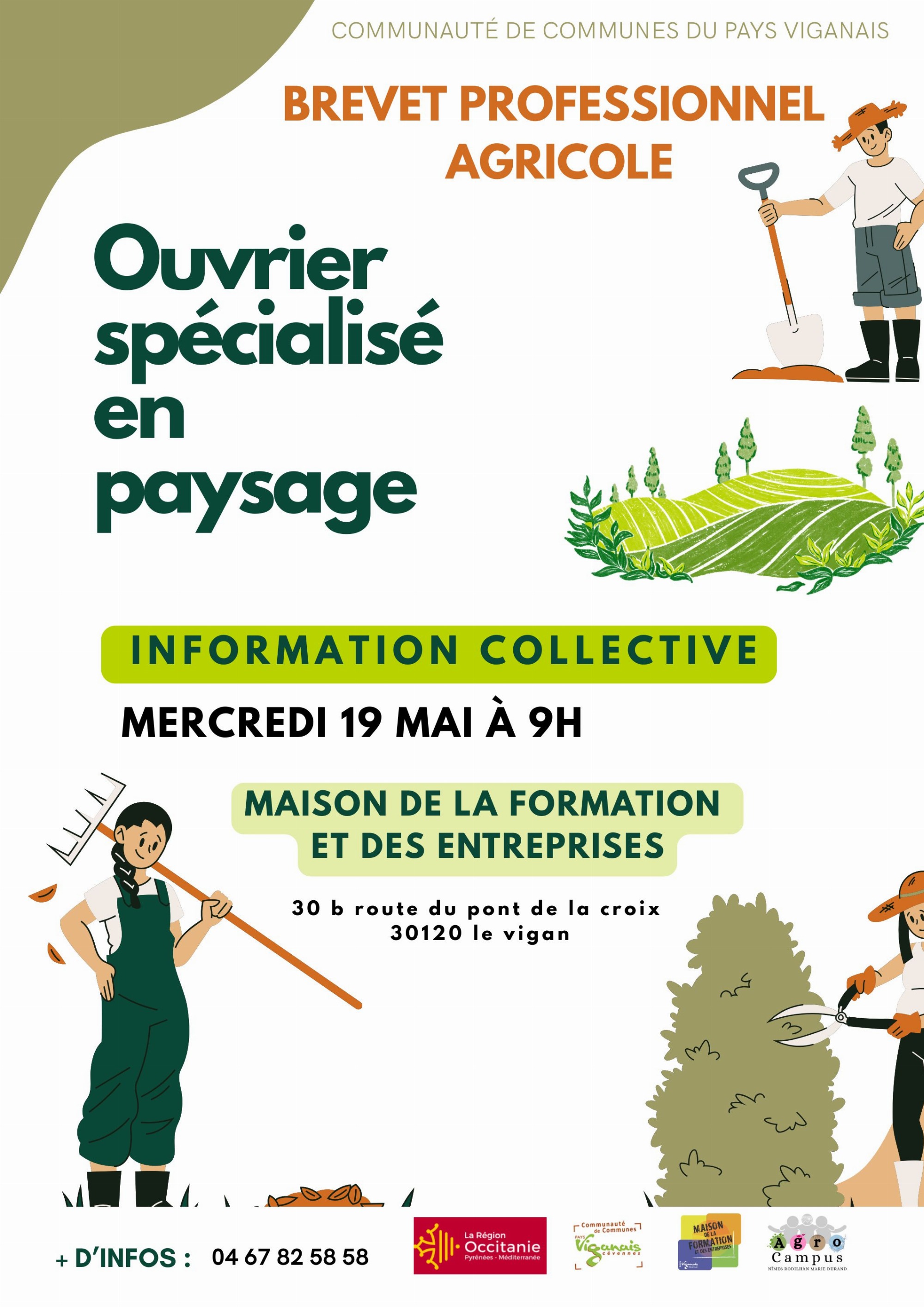 Information collective sur le Brevet Professionnel Agricole "Ouvrier spécialisé en paysage" proposé par l'Agro Campus Nimes Rodihan Marie Durand à la Maison de la formation et des entreprises au Vigan.