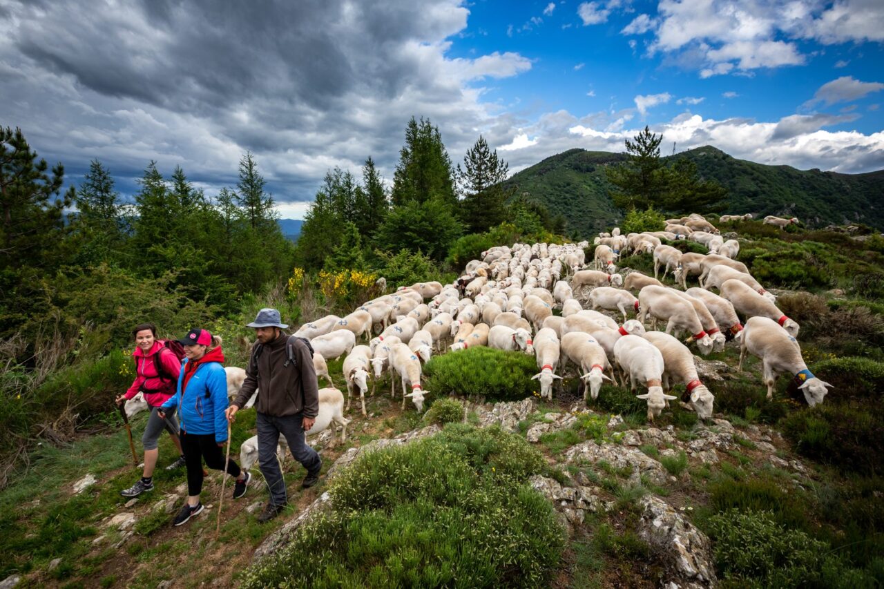 La transhumance vers le sommet de l’Aigoual et les hauts plateaux des Causses est une tradition toujours vivante en Sud Cévennes. A l’arrivée des fortes chaleurs méditerranéennes, quelques 7 000 bêtes entreprennent leur transhumance annuelle sur les chemins ou « drailles » menant en altitude.