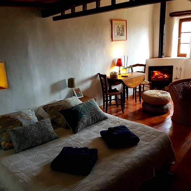 Sur un bâti traditionnel en pierre, toutes les rénovations ont été effectuées en auto construction et en matériaux naturels écologiques : chaux, chanvre, argile crue, bois.