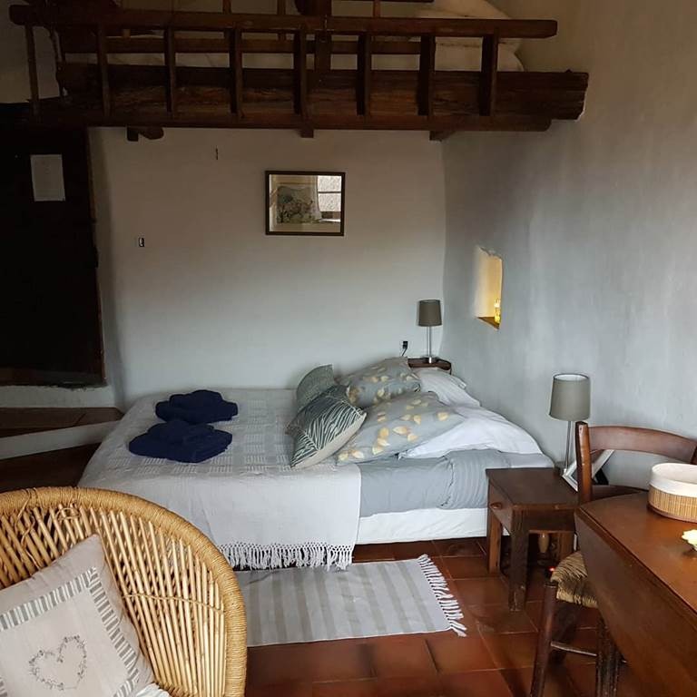 Elle est également labellisée 3 épis chez Gites de France. Vous y trouverez une cheminée, un lit en 160cm, table et chaises, une bouilloire. Dans la salle d'eau, une grande douche, lavabo et toilettes sèches. Vous aurez également une terrasse privative devant la chambre.