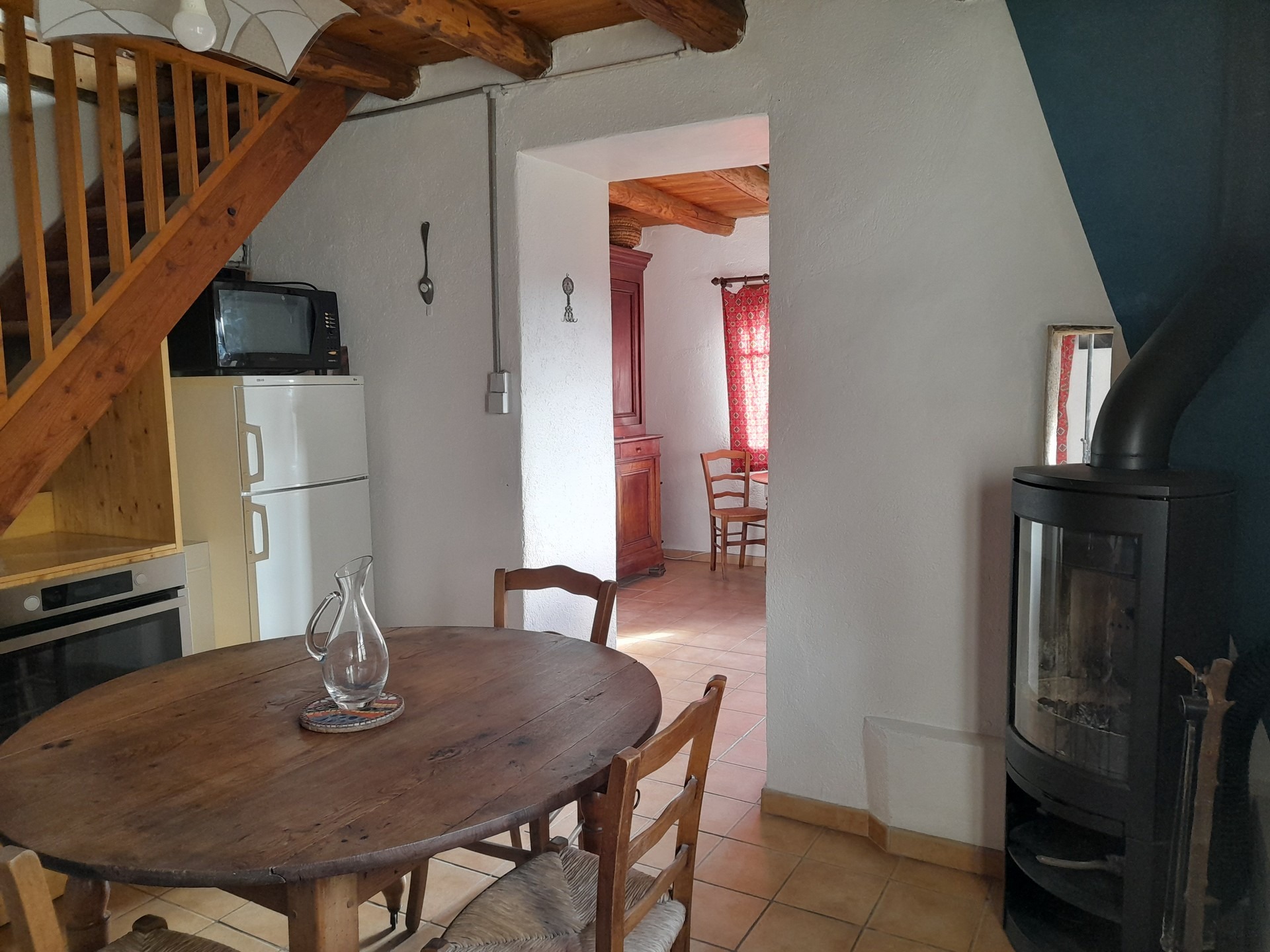 Au premier étage, accès par escalier intérieur ou par l'extérieur (4 marches), une chambre, une petite salle d'eau, un coin détente/bureau.