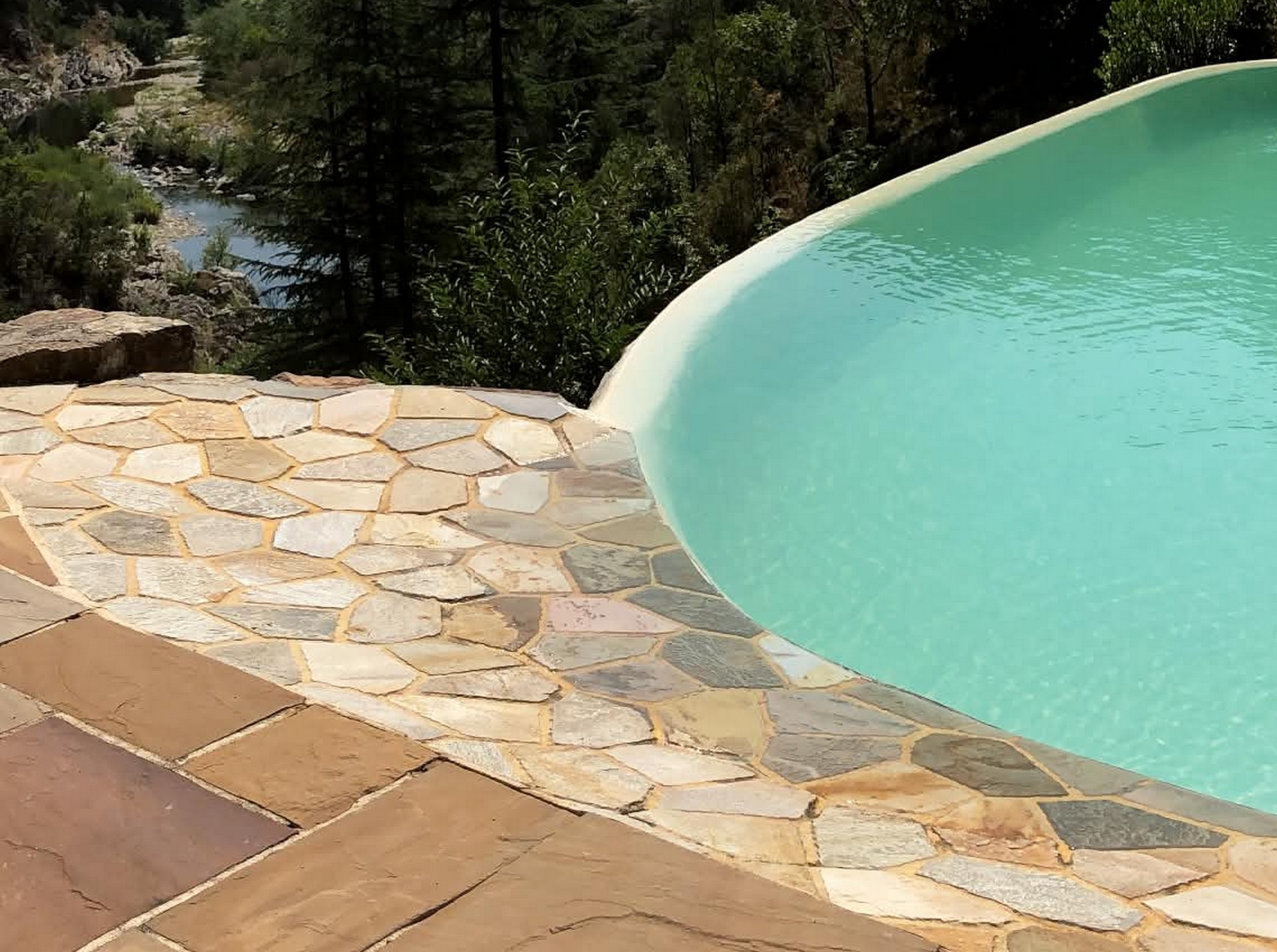La piscine à débordement est une terrasse plus bas avec son terrain de pétanque attenant, la rivière et ses petite plages privées en contre-bas en suivant un sentier escarpé. Déconseillée aux très jeunes enfants de 2 à 7 ans ; beaucoup d'escalier à l'extérieur.