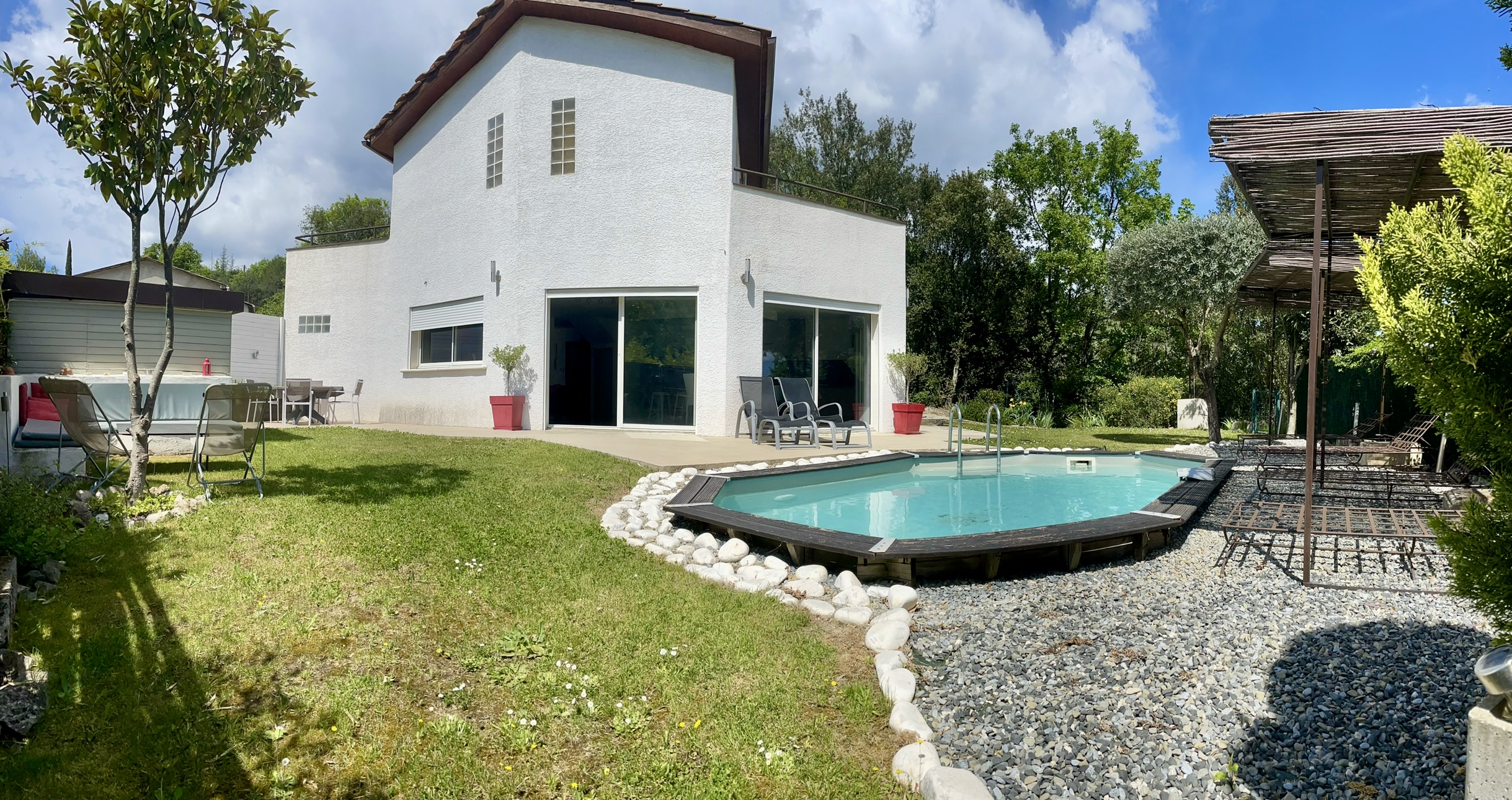 La Lumina est une villa contemporaine situé au pied du contrefort des Cévennes dans le Gard, entre Anduze et St-Hippolyte-du-Fort, près des Gorges de l’Hérault, des Gorges du Gardon, ou même des Gorges de l'Ardèche.