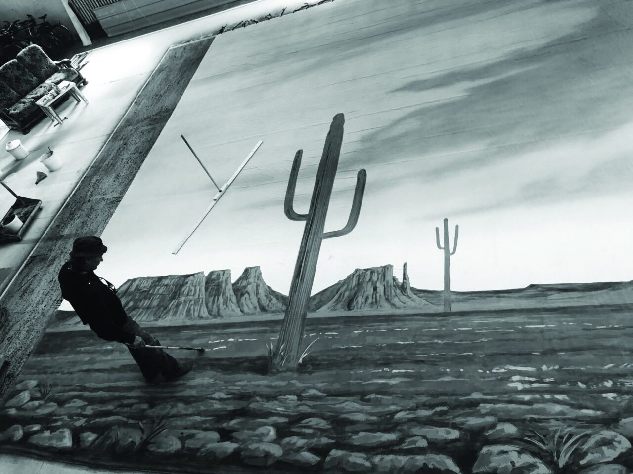 Roland : Nous réalisons des décors, des peintures sur toiles destinés à des opéras, des théâtres, des musées, au cinéma… Nous pouvons peindre des ciels, des forêts, des architectures illusionnistes, des trompe-l’oeil… Nous intervenons sur de nombreux projets différents. J’ai également restauré des fresques et des sculptures dans les églises, notamment celles de Montdardier et d’Arre. Il m’arrive aussi d’exposer mes propres créations.