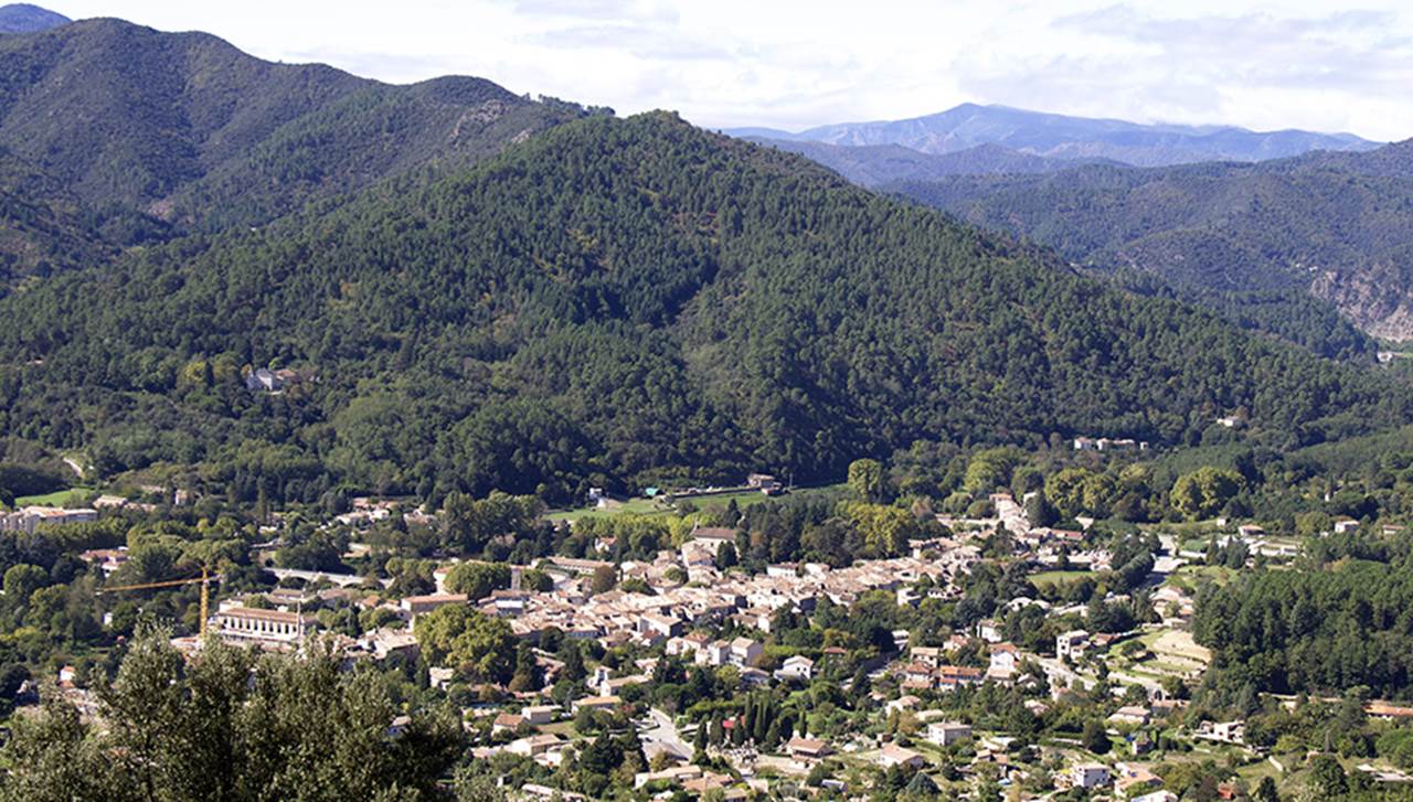 Installé en fond de vallée et enchâssé dans son environnement collinaire comme une perle dans son écrin, le bourg est dominé par le pic d’Arbousse, les hauteurs de Sueilhes, de Montezorgues, par le col Saint Pierre et le Mont Brion (815m). Dans ces collines, au Nord et Nord Est de la ville, les traces d’un peuplement néolithique (menhirs, dolmens et tombes à coffre) ont été mises à jour.