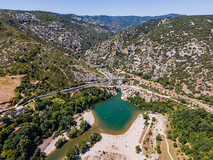 La partie la plus impressionnante du fleuve est visible entre Laroque jusqu'à Saint Guilhem le Désert et constitue le Grand Site de France des Gorges de l'Hérault.
