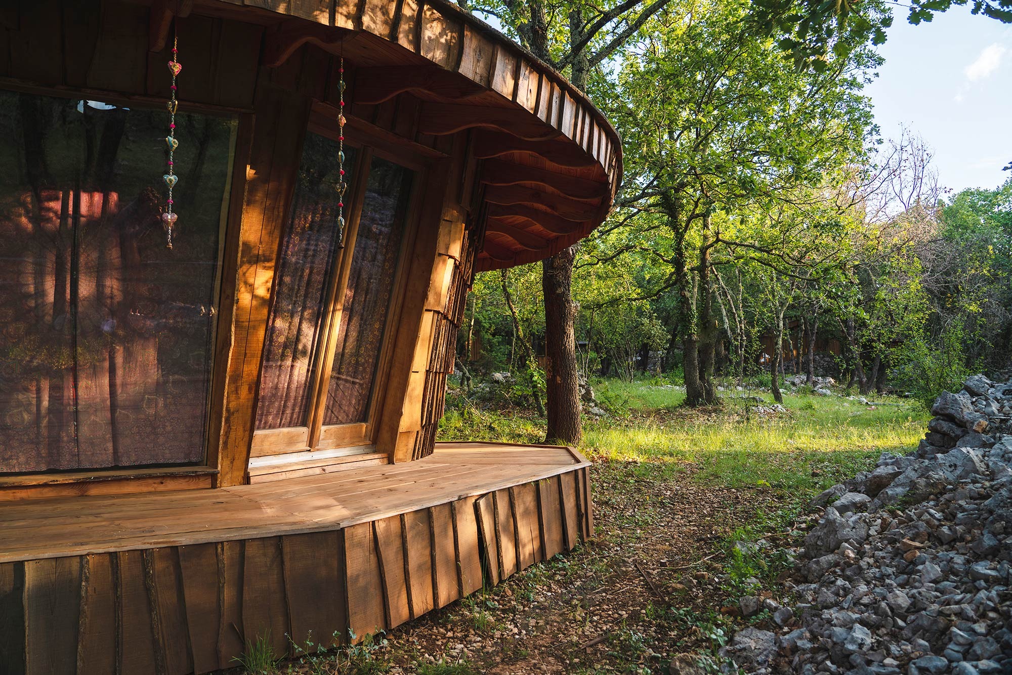 Nous avons cocréer ce lieu il y a 15 ans maintenant, et auto-construit toutes nos cabanes avec nos mains et des matériaux sains.